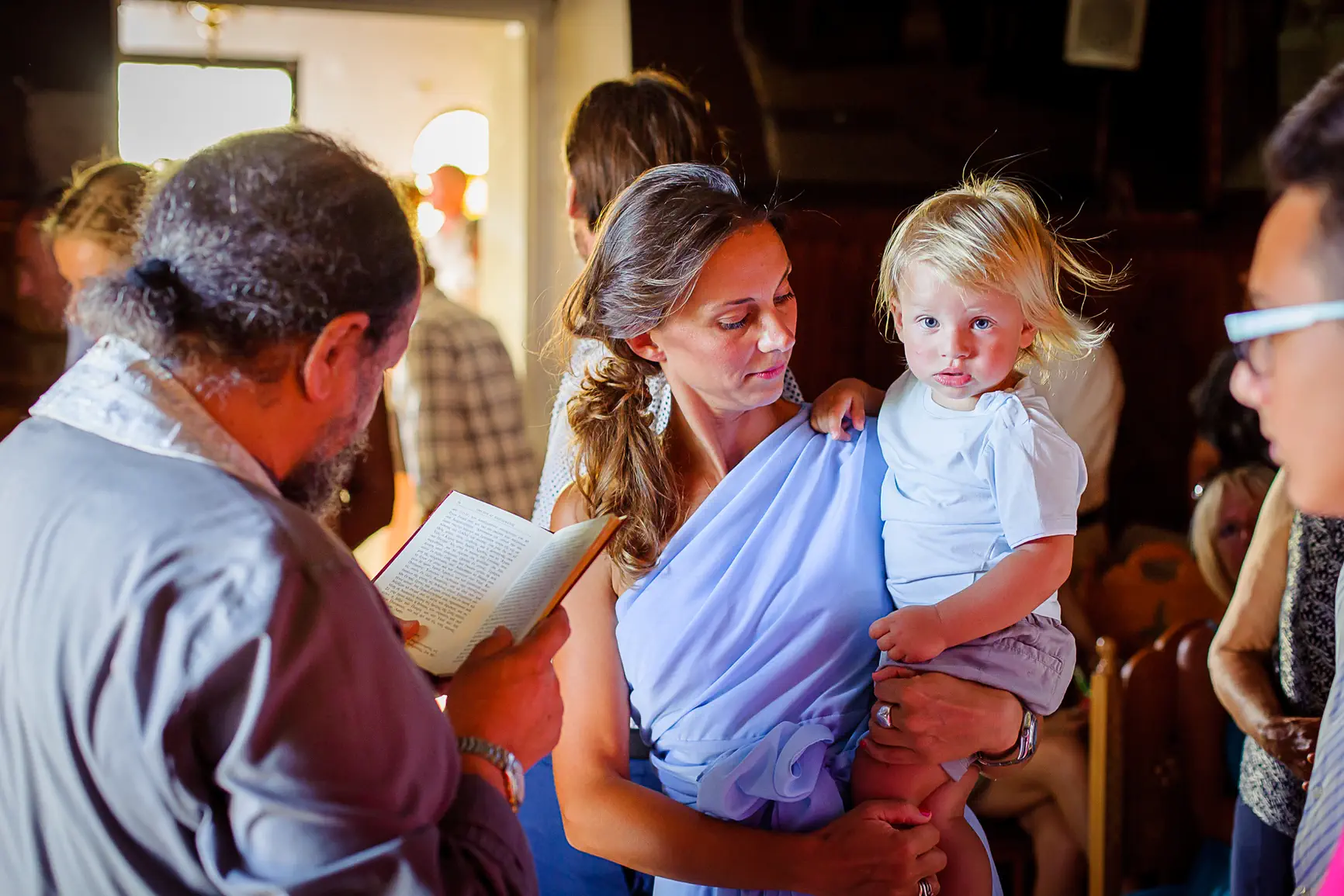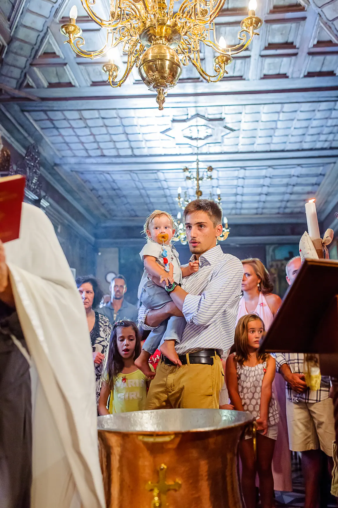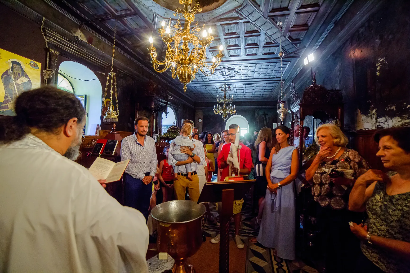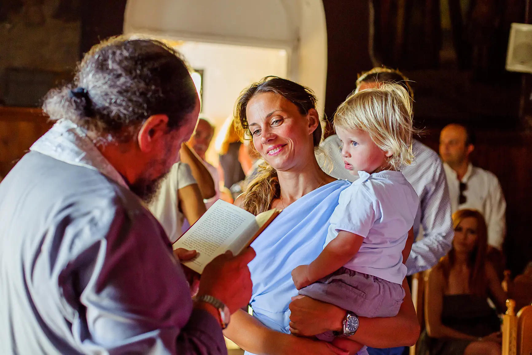 Ο μικρός πρωταγωνιστής, άλλοτε ήρεμος στην αγκαλιά των αγαπημένων του και άλλοτε παρατηρώντας με περιέργεια τον κόσμο γύρω του, έκλεψε τις καρδιές όλων με την αθωότητά του. Η ομορφιά του τοπίου, με το γαλάζιο της θάλασσας και του ουρανού να κυριαρχεί, συνδυάστηκε αρμονικά με την πνευματική χαρά της ημέρας.