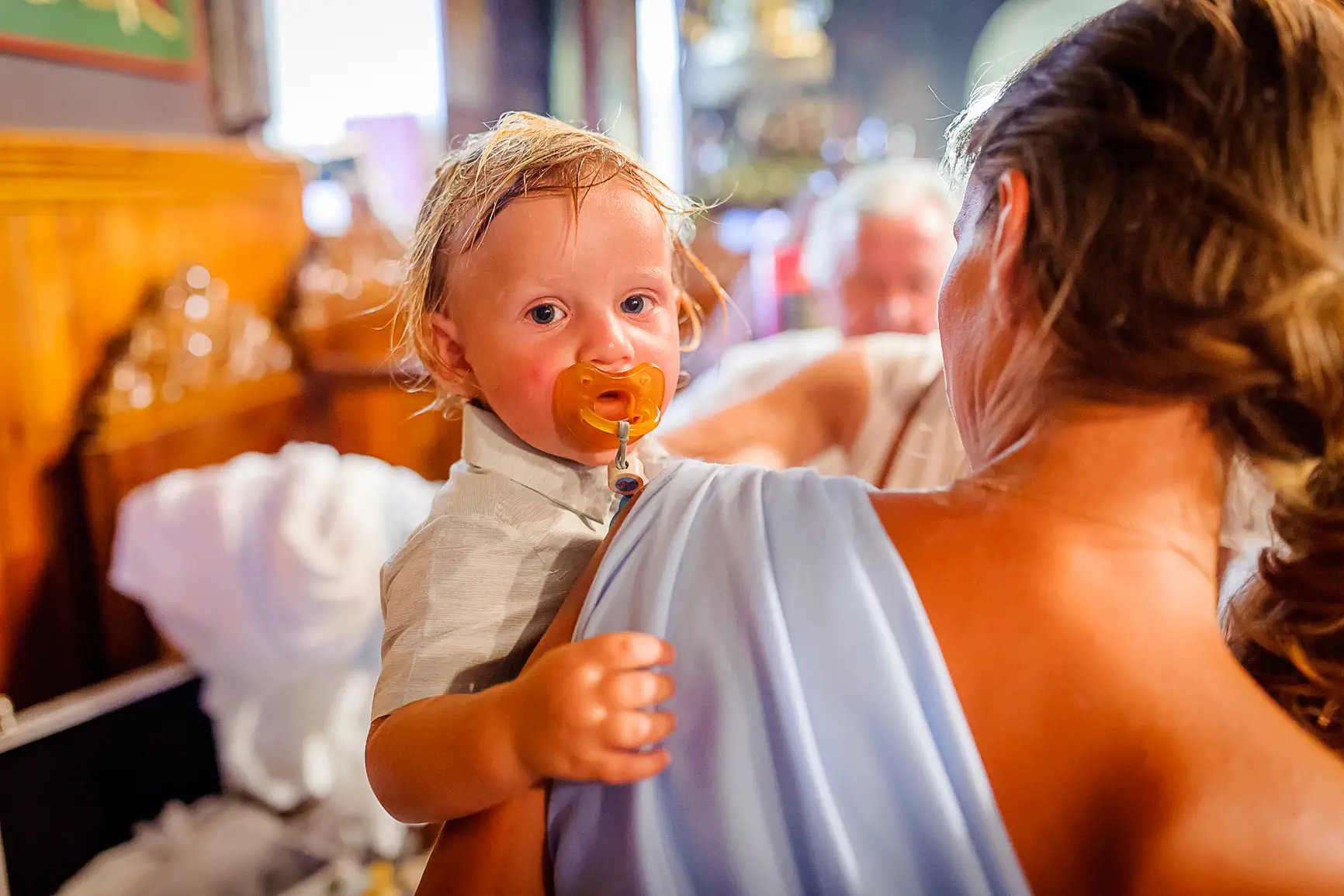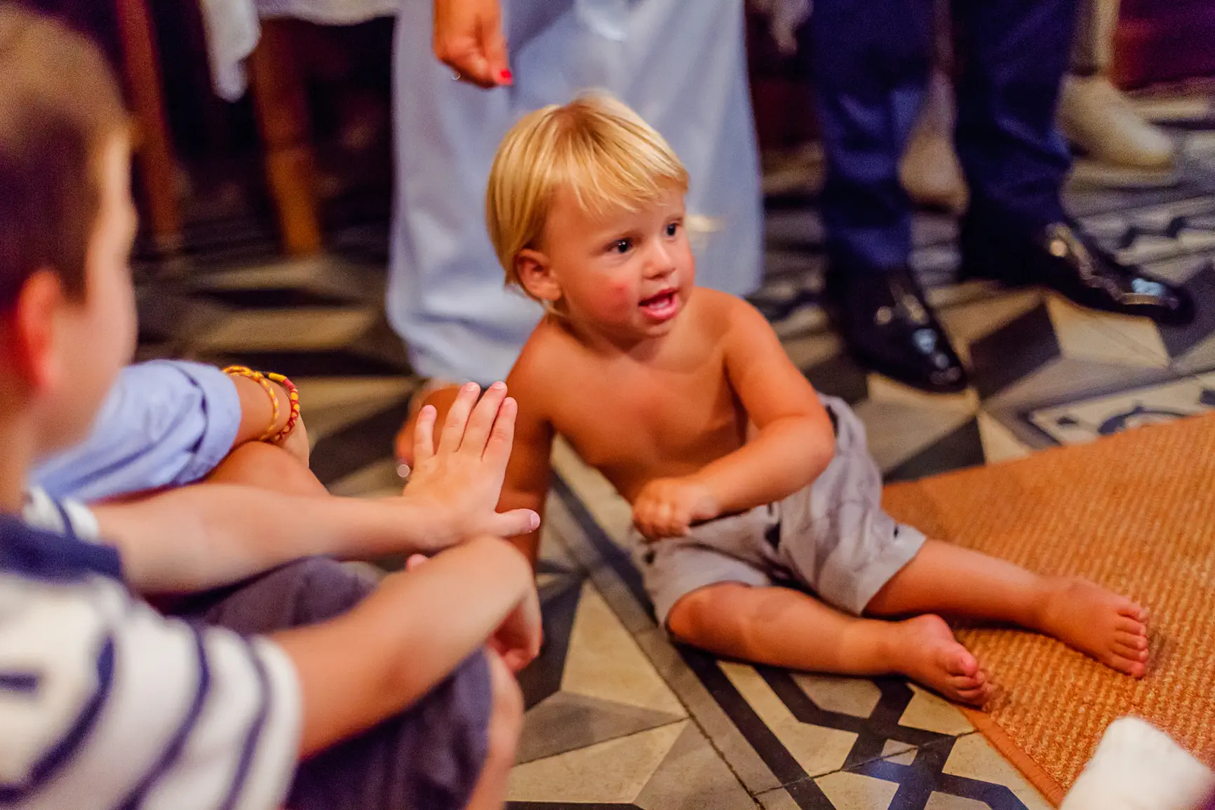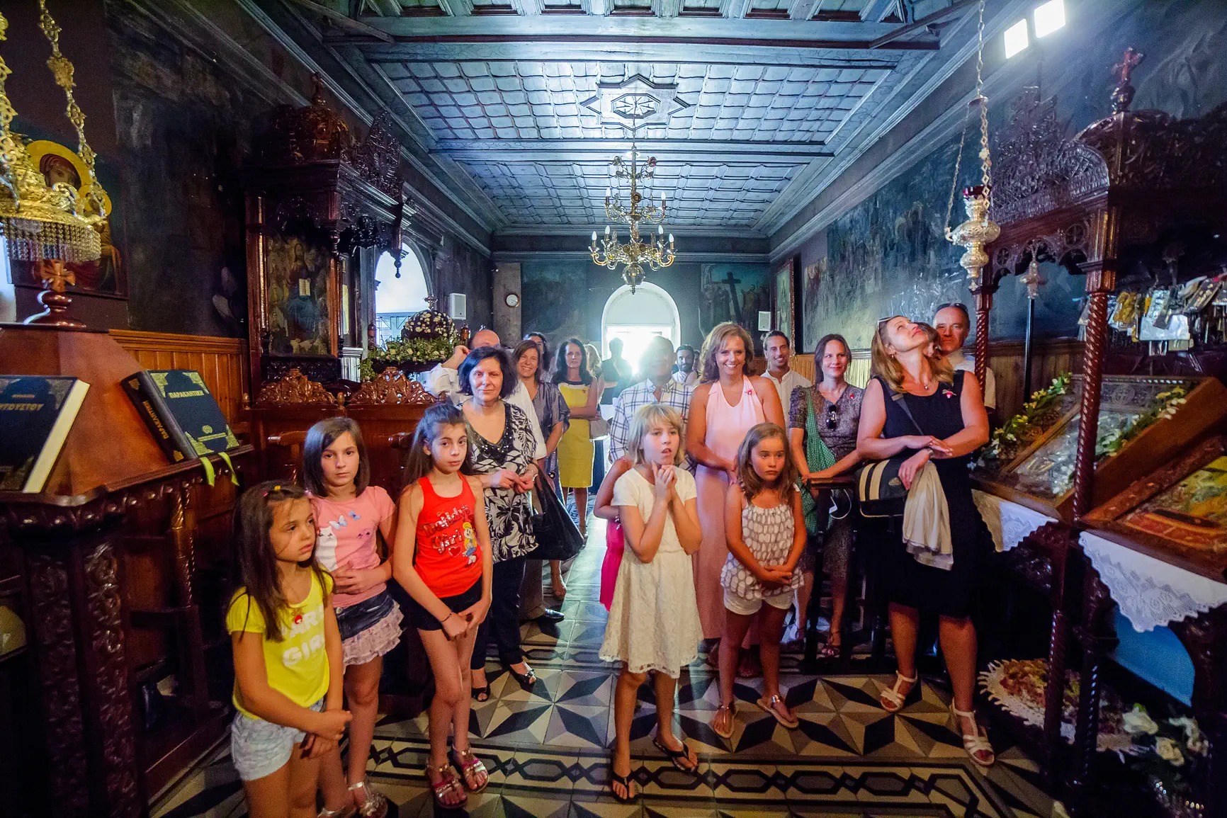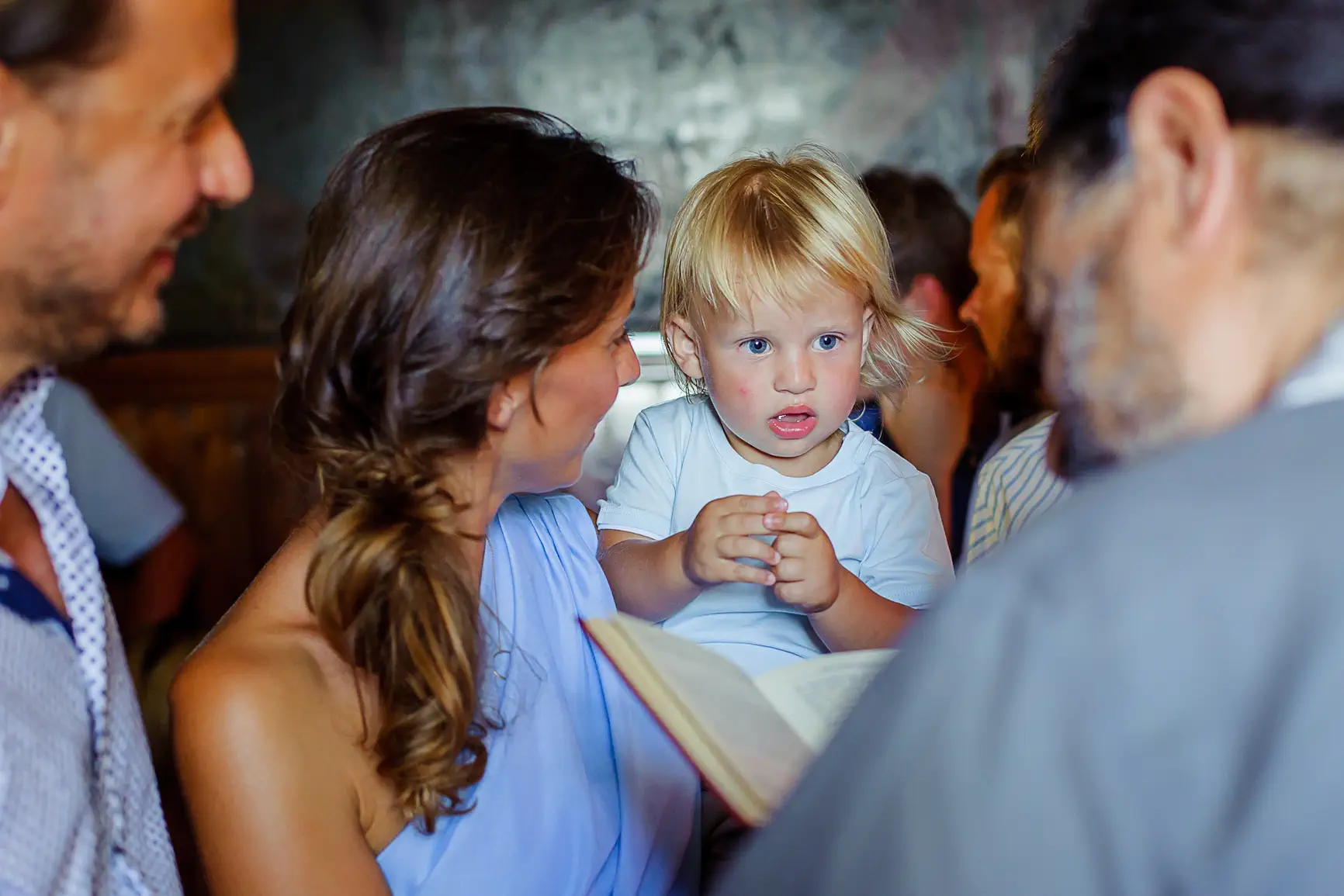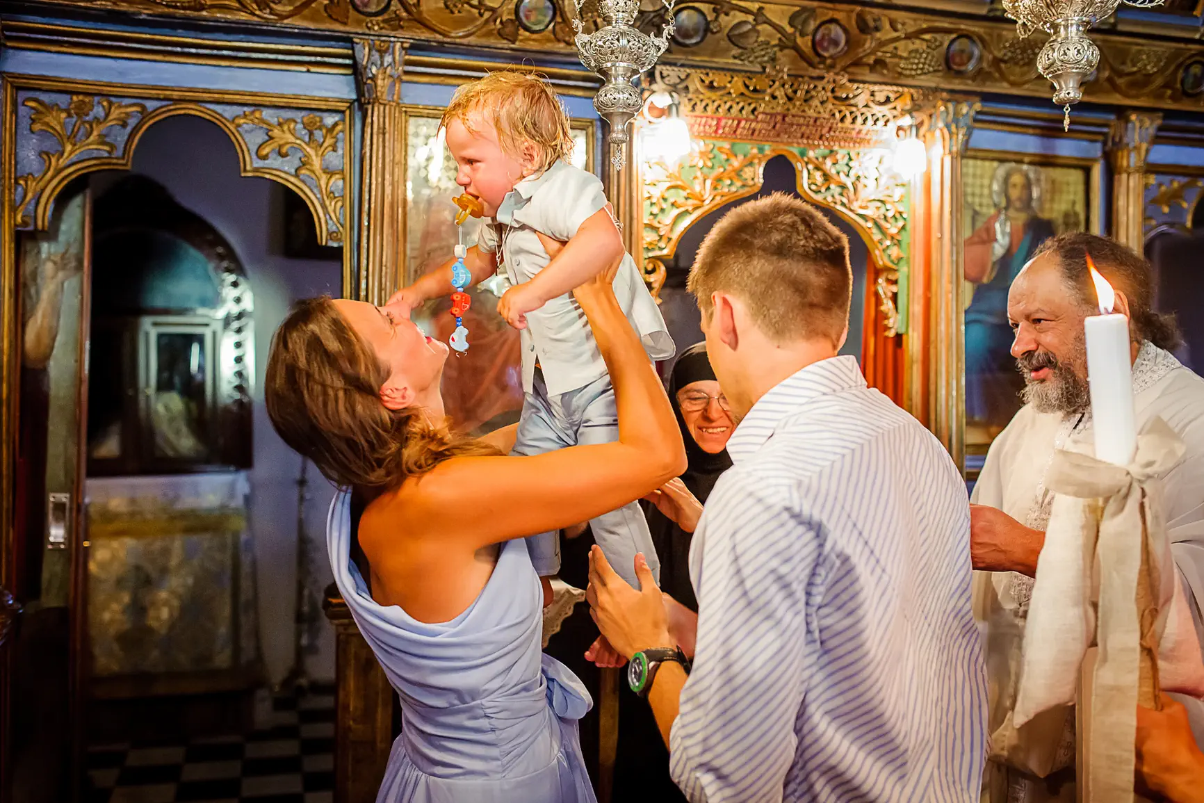 Ο μικρός πρωταγωνιστής, άλλοτε ήρεμος στην αγκαλιά των αγαπημένων του και άλλοτε παρατηρώντας με περιέργεια τον κόσμο γύρω του, έκλεψε τις καρδιές όλων με την αθωότητά του. Η ομορφιά του τοπίου, με το γαλάζιο της θάλασσας και του ουρανού να κυριαρχεί, συνδυάστηκε αρμονικά με την πνευματική χαρά της ημέρας.