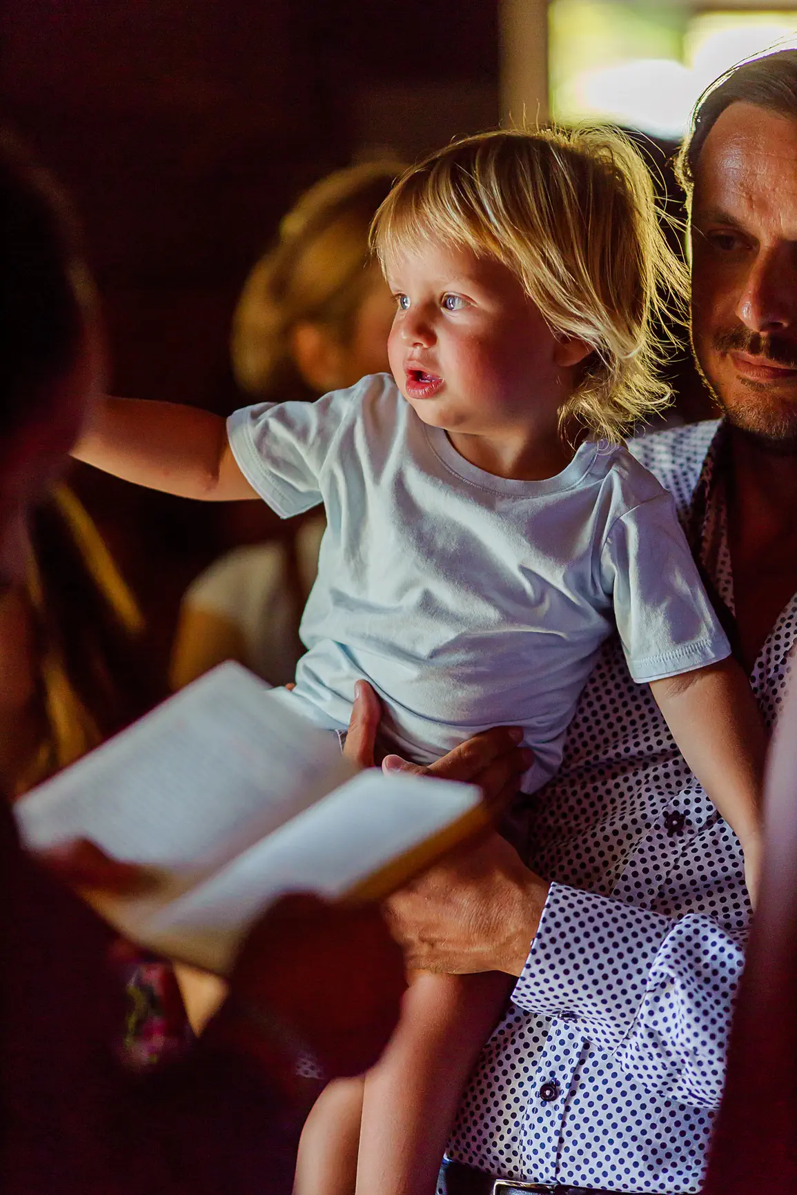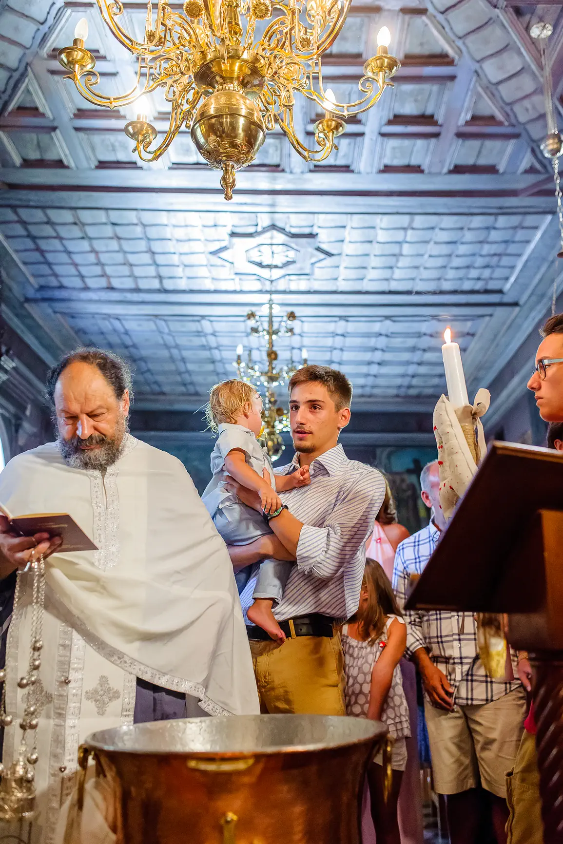 Μέσα στον ναό, η τελετή κύλησε με ευλάβεια και βαθιά συγκίνηση. Η στιγμή που ο Αλέξιος βυθίστηκε στην αγιασμένη κολυμπήθρα, δέχτηκε το χρίσμα και φόρεσε τα λευκά, σύμβολο αγνότητας και νέας αρχής, ήταν η κορύφωση του μυστηρίου. Τα πρόσωπα των γονιών του έλαμπαν από περηφάνια και τρυφερότητα, ενώ οι νονοί του, με αίσθημα ευθύνης και αγάπης, τον συνόδευαν σε αυτό το σημαντικό βήμα. Το όνομα “Αλέξιος” ακούστηκε για πρώτη φορά, γεμίζοντας τον χώρο με ευχές και ελπίδα για το μέλλον του.