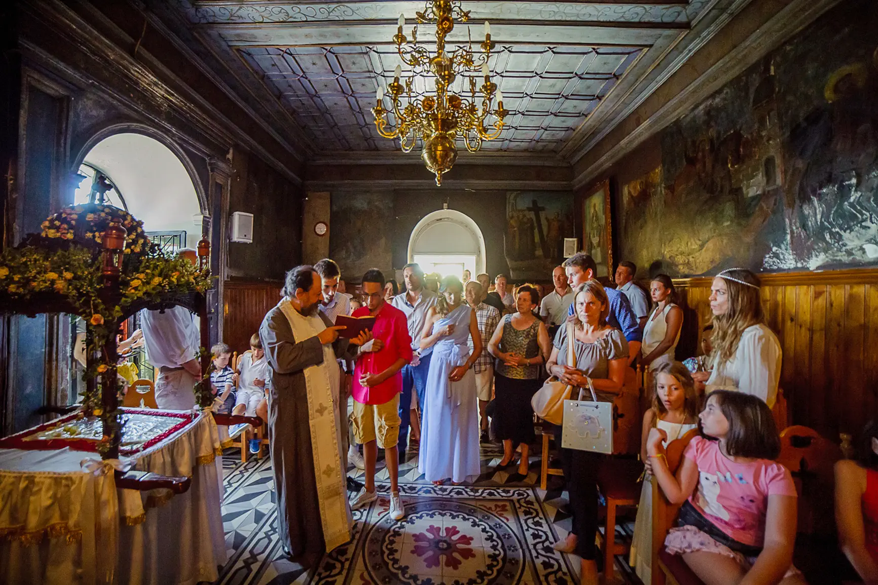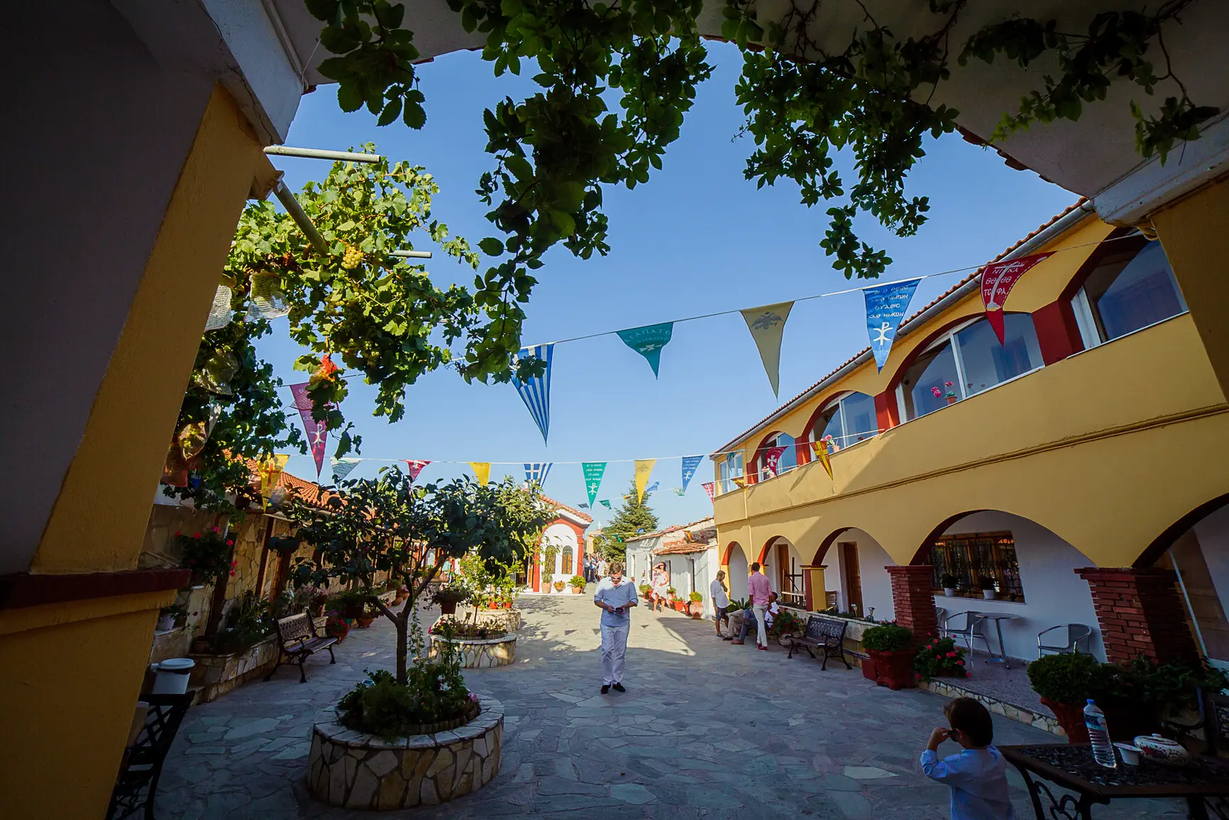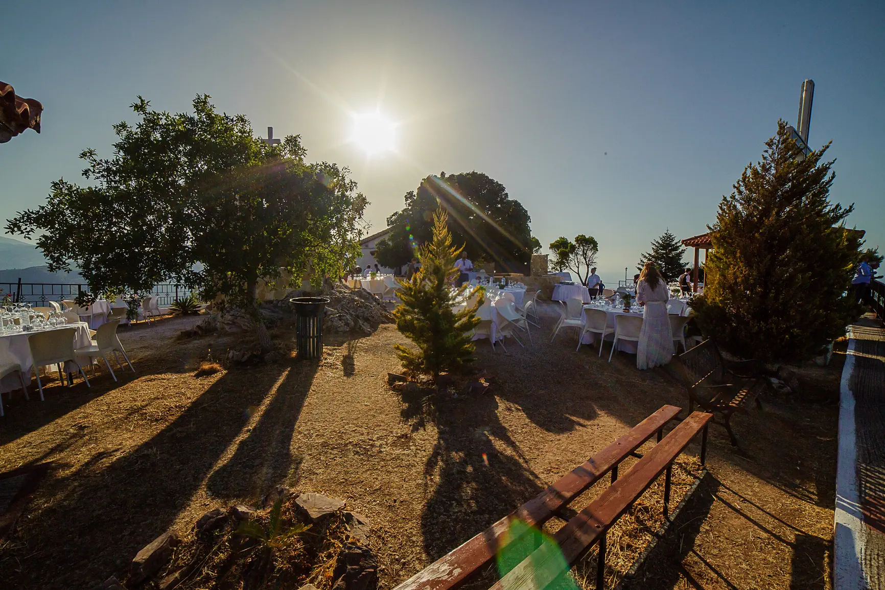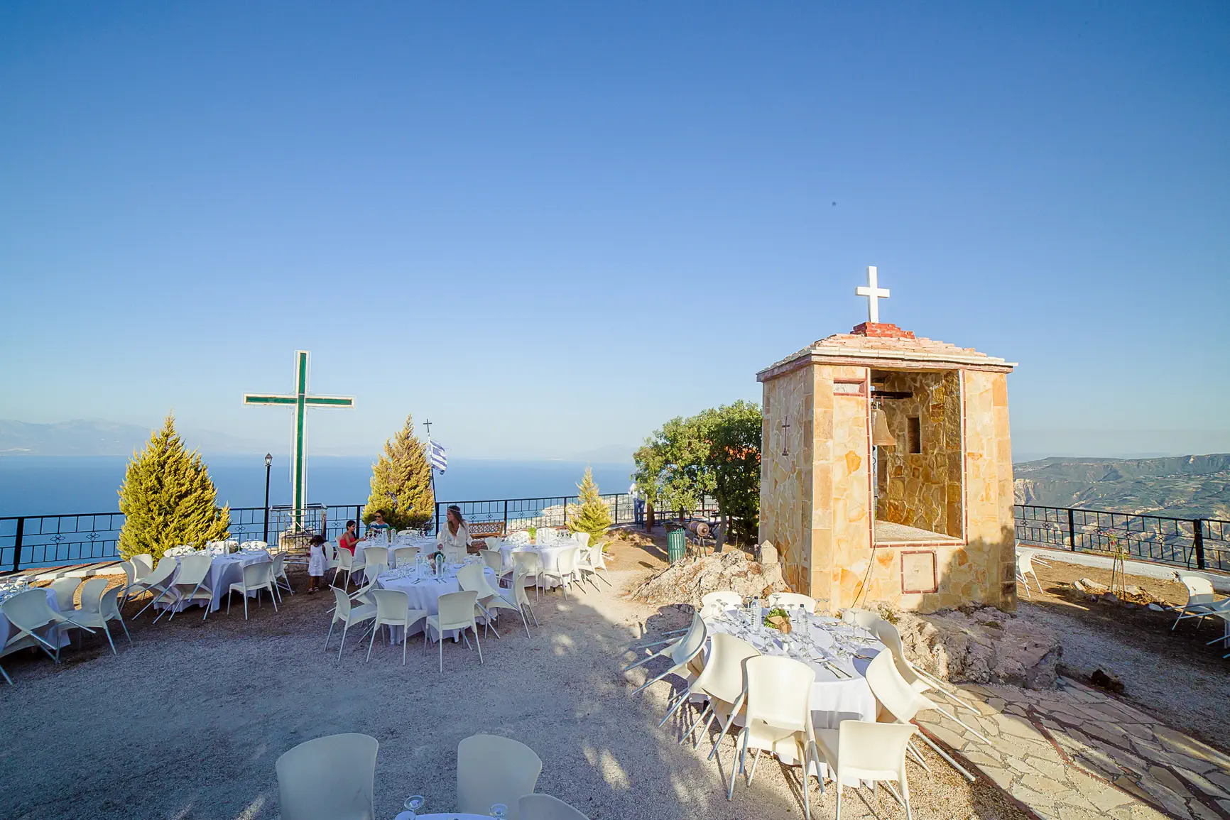 Η βάπτιση του μικρού Αλέξιου στον ιερό ναό της Παναγίας Κορυφής (ή Κορφιώτισσας) στο Ξυλόκαστρο ήταν μια μέρα πραγματικά ξεχωριστή, λουσμένη στο φως και τη γαλήνη του Κορινθιακού κόλπου. Η εκκλησία, σκαρφαλωμένη σε προνομιακή θέση με θέα που κόβει την ανάσα, προσέφερε το ιδανικό, κατανυκτικό σκηνικό για την είσοδο του νεοφώτιστου στην αγκαλιά της Ορθοδοξίας. Ο λαμπερός ήλιος έκανε τη θάλασσα να αστράφτει, αντανακλώντας τη χαρά και την προσμονή που ήταν διάχυτη στην ατμόσφαιρα καθώς οι καλεσμένοι συγκεντρώνονταν.