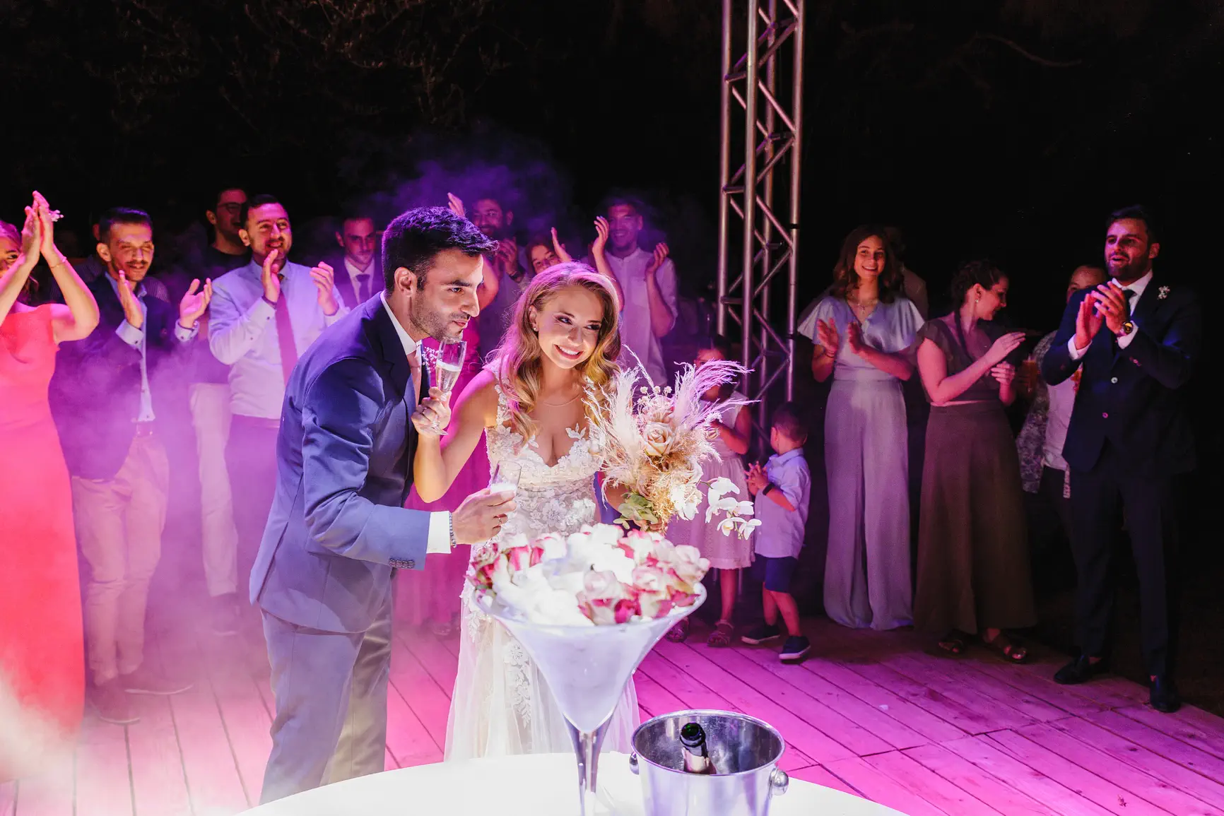 Η δεξίωση που ακολούθησε ήταν ένα πραγματικό πάρτι αγάπης και γιορτής. Με φόντο το ειδυλλιακό σκηνικό του κτήματος, οι καλεσμένοι, παρασυρμένοι από το κέφι και τη ζωντάνια του ζευγαριού, γέμισαν την πίστα με χορό, γέλια και ευχές. Η άψογη οργάνωση, οι υπέροχες γεύσεις και η ζεστή φιλοξενία συνέθεσαν μια αξέχαστη βραδιά που κράτησε μέχρι τις πρώτες πρωινές ώρες.
