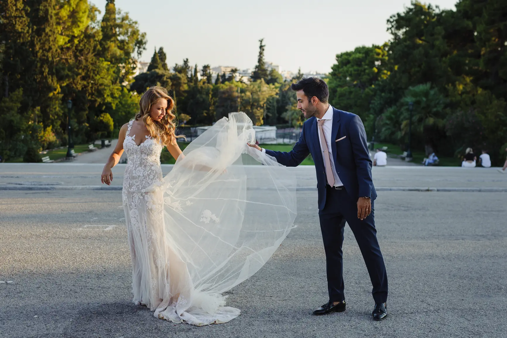 Η ρομαντική τους ιστορία, όμως, είχε και συνέχεια. Λίγες μέρες μετά τον γάμο, ο Χάρης και η Γιούλη επέλεξαν να πραγματοποιήσουν μια ξεχωριστή φωτογράφιση “επόμενης ημέρας” στην καρδιά της Αθήνας. Πόζαραν με φόντο την επιβλητική αρχιτεκτονική του Ζαππείου Μεγάρου και περπάτησαν στα γραφικά, ιστορικά σοκάκια της Πλάκας. Αυτή η φωτογράφιση αποτύπωσε την τρυφερότητα και τον έρωτά τους σε ένα πιο χαλαρό, αστικό τοπίο, δημιουργώντας διαχρονικές εικόνες γεμάτες ρομαντισμό.
