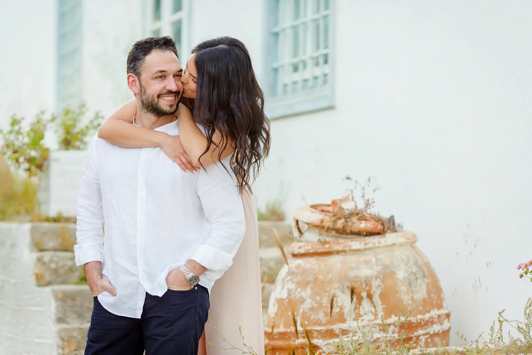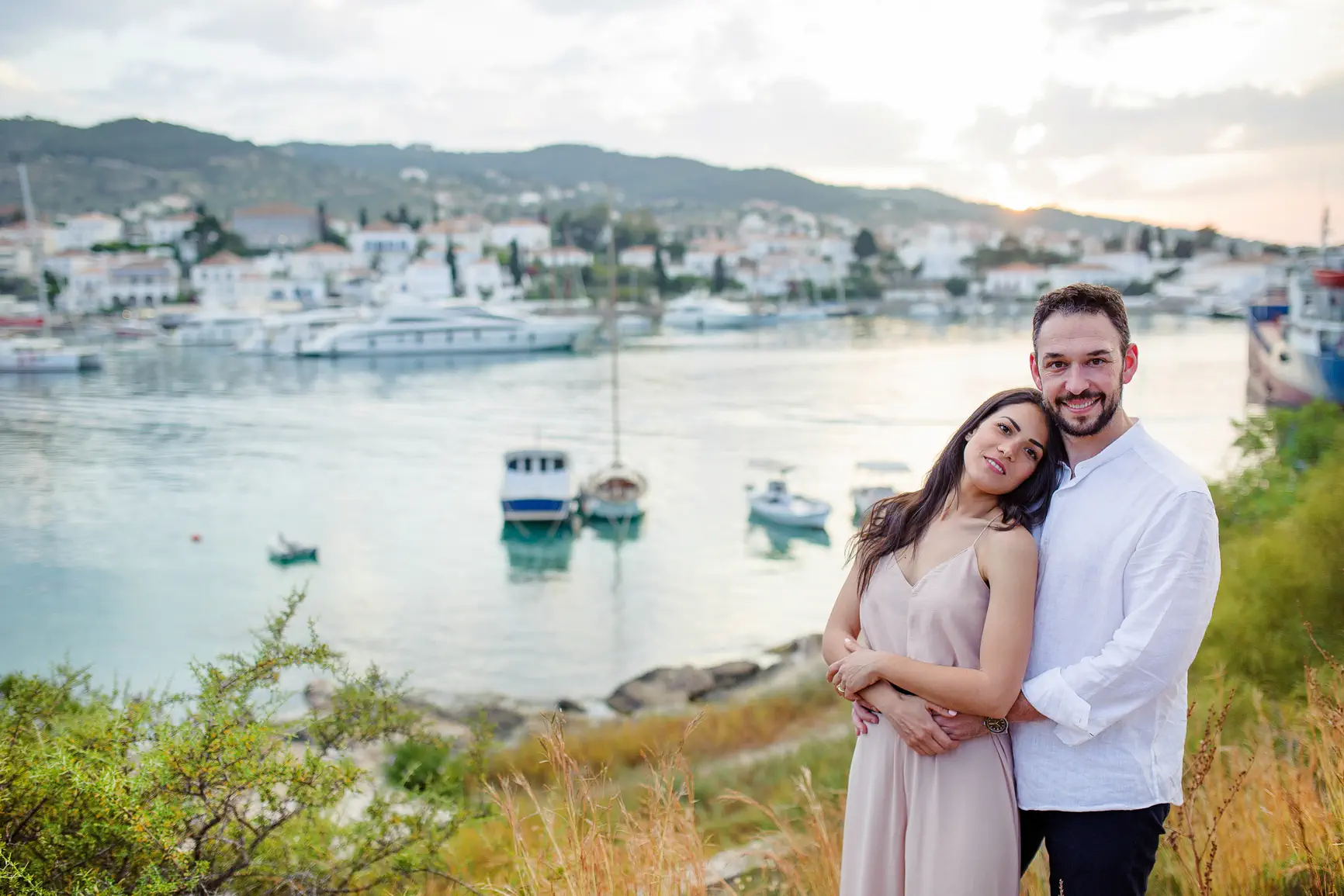 Η ιστορία αγάπης του ζευγαριού είχε ήδη αφήσει το στίγμα της στις Σπέτσες, το νησί όπου γνωρίστηκαν. Η τρυφερή φωτογράφιση που πραγματοποίησαν εκεί πριν τον γάμο, αιχμαλώτισε την αθωότητα και τον ενθουσιασμό της αρχής, προσθέτοντας ένα ακόμη κεφάλαιο ρομαντισμού στην όλη ιστορία. Ο γάμος τους στη Βουλιαγμένη ήταν η κορύφωση αυτής της αγάπης, μια γιορτή γεμάτη φως, χρώμα και αληθινά συναισθήματα, η τέλεια αρχή για την κοινή τους ζωή.