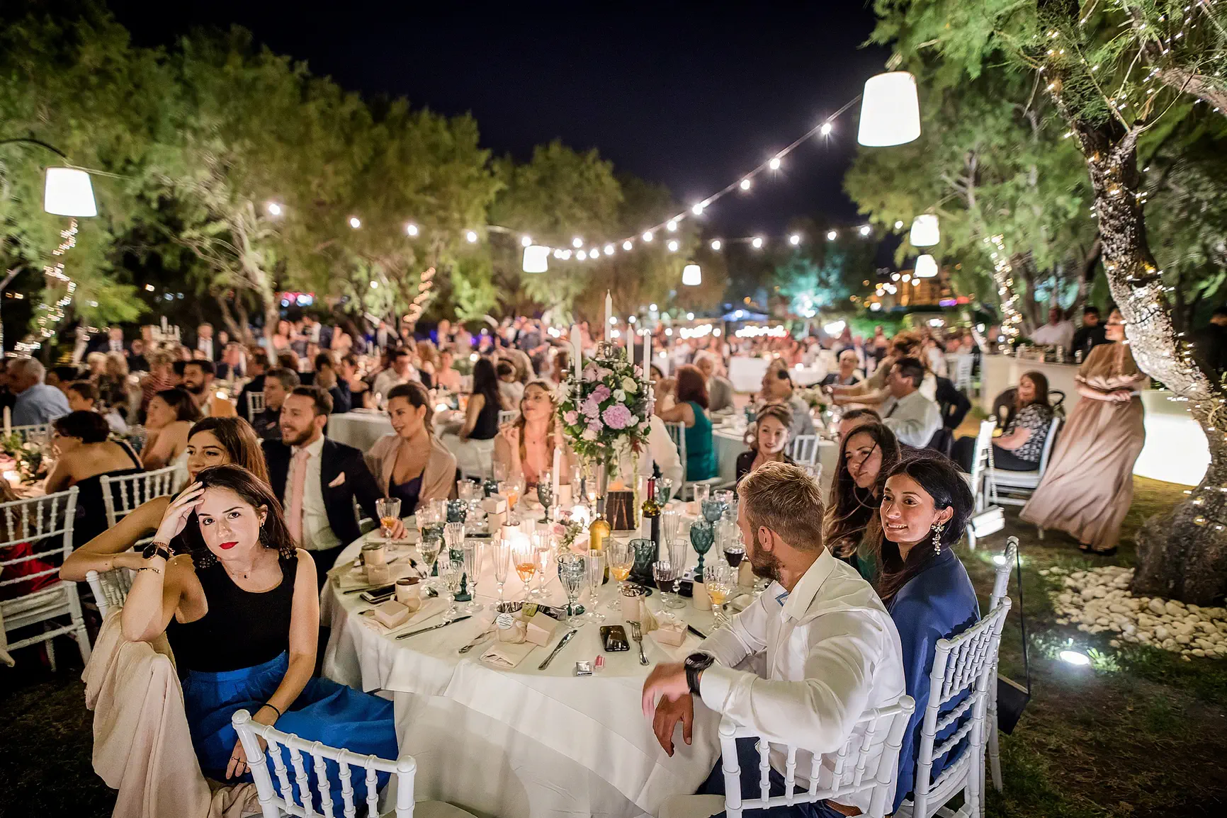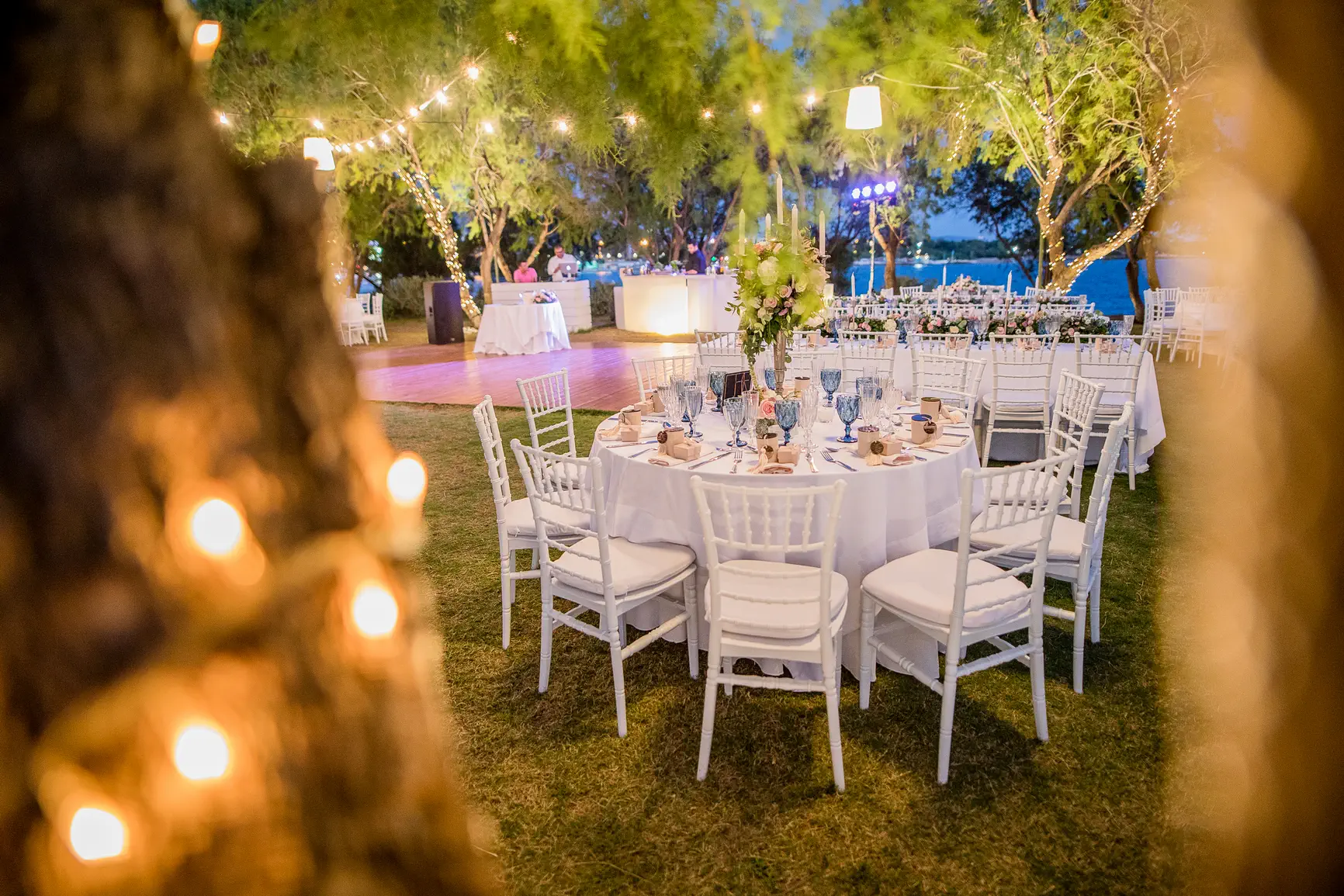 Μετά την τελετή, η γιορτή μεταφέρθηκε στον εκλεπτυσμένο χώρο του Ble Azure, όπου η κομψότητα συναντούσε τη μαγευτική θέα στο απέραντο γαλάζιο. Η παστέλ παλέτα συνεχίστηκε και στη διακόσμηση της δεξίωσης, δημιουργώντας ένα περιβάλλον ζεστό και φιλόξενο. Οι καλεσμένοι απόλαυσαν εξαιρετικές γεύσεις, δροσερά κοκτέιλ και χόρεψαν μέχρι τις πρώτες πρωινές ώρες υπό τους ήχους αγαπημένων μελωδιών.