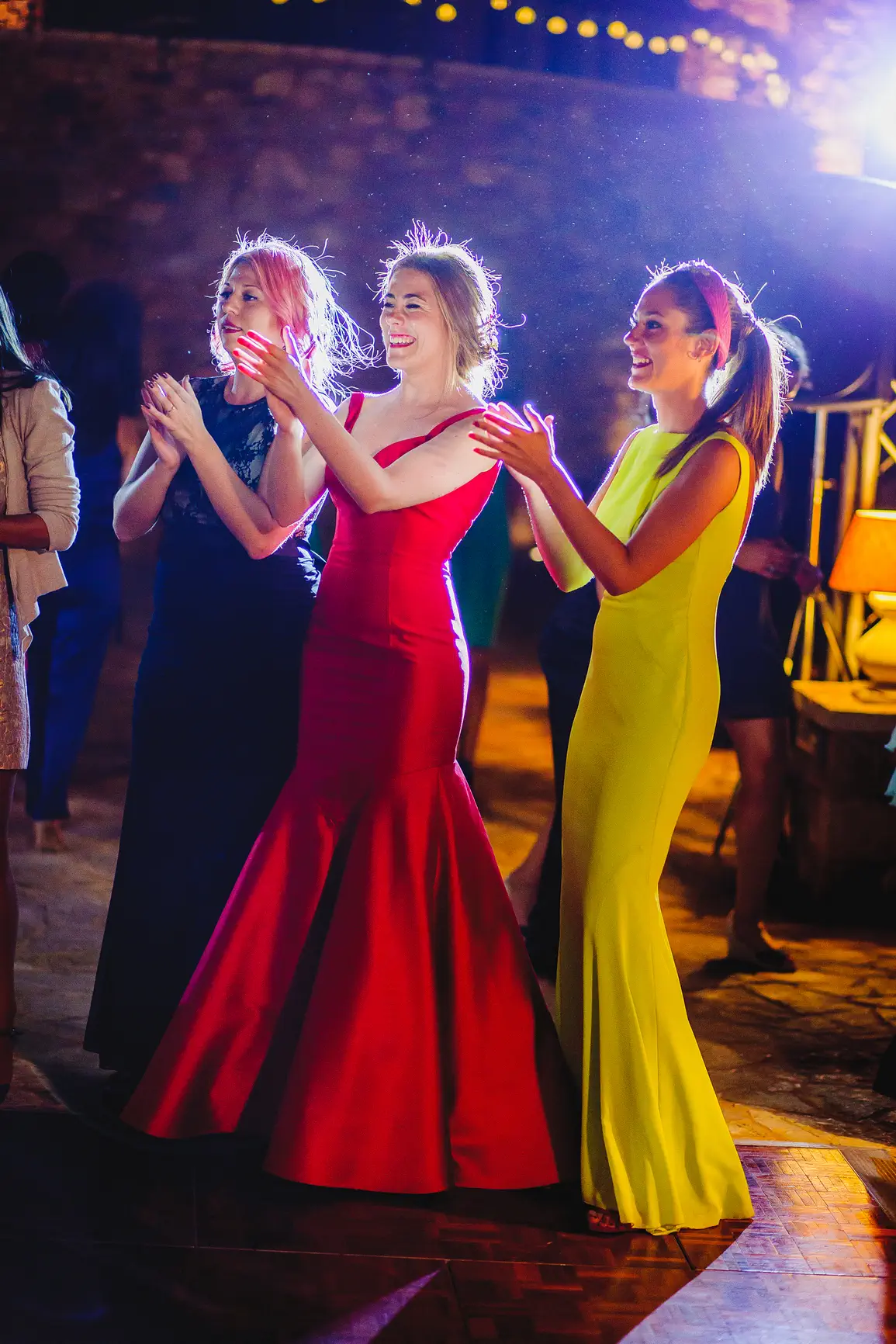 Αμέσως μετά την τελετή, η ατμόσφαιρα ηλεκτρίστηκε και το κέφι άναψε. Ένα ξέφρενο γλέντι ξεκίνησε, με τη μουσική να πλημμυρίζει τους καταπράσινους κήπους, καλώντας τους πάντες στον χορό. Γέλια, ευχές και φωνές χαράς ενώνονταν σε έναν ατελείωτο ρυθμό, καθώς οι καλεσμένοι αφέθηκαν στην απόλυτη διασκέδαση. Το εκλεκτό φαγητό και τα εκλεκτά ποτά έρρεαν άφθονα, συμπληρώνοντας την αίσθηση της απεριόριστης ευδαιμονίας. Ο Πύργος Πετρέζα δονήθηκε από τη ζωντάνια τους, με τον χορό και το τραγούδι να συνεχίζονται μέχρι τις πρώτες πρωινές ώρες.