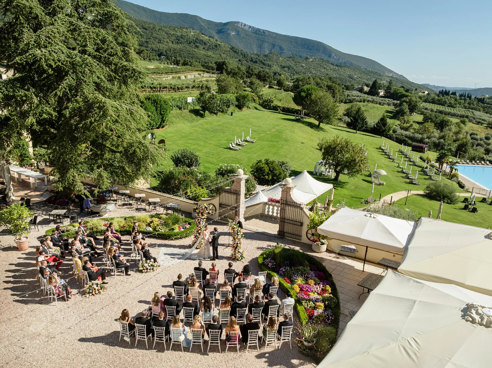 Η Villa Cariola, σε κοντινή τοποθεσία στην ειδυλλιακή Λίμνη Garda, αποτέλεσε το ιδανικό σκηνικό. Η αρχιτεκτονική, το φυσικό φως και οι ανοιχτοί χώροι της βίλας δημιούργησαν ένα περιβάλλον όπου κάθε στιγμή μπορούσε να γίνει φωτογραφία. Λίγες ώρες πριν από τη μεγάλη ημέρα, το ζευγάρι είχε οργανώσει ένα γαμήλιο pre–wedding πάρτι, γεμάτο γέλιο, μουσική και χαλαρή ατμόσφαιρα. Δύο άνθρωποι που ήθελαν να μοιραστούν τη χαρά τους με όλους όσους αγαπούν.