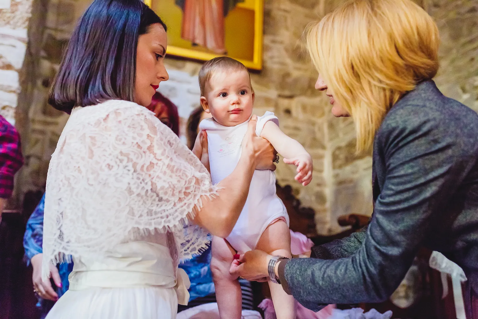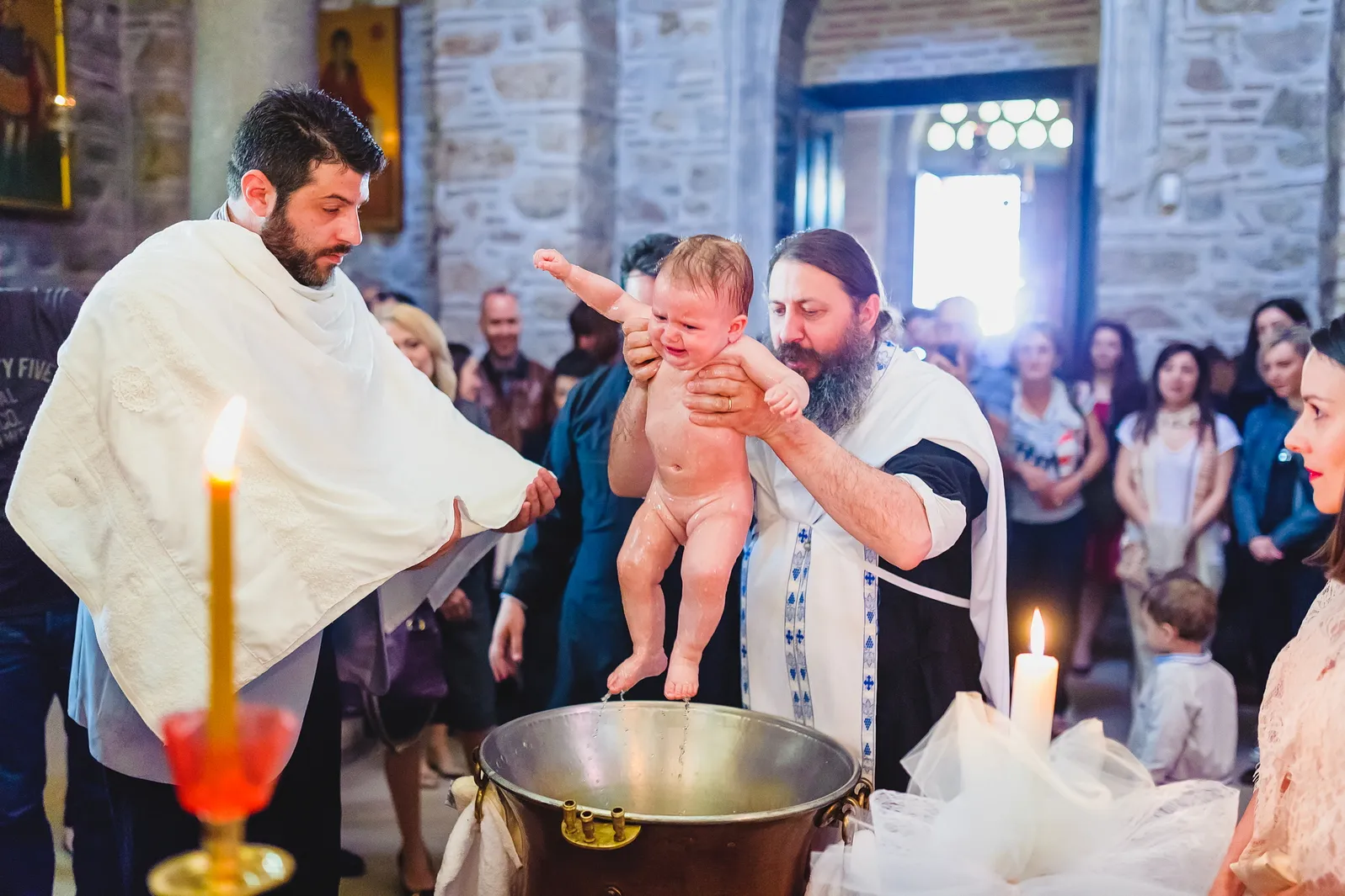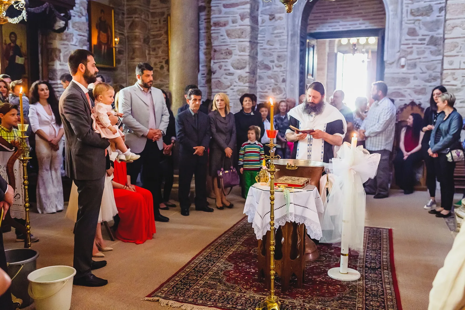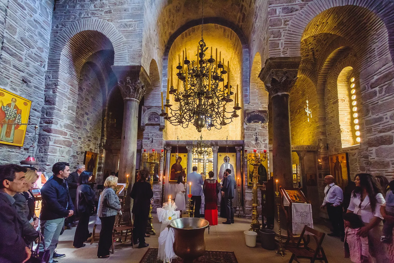 Η ατμόσφαιρα εντός του Καθολικού της Μονής ήταν μοναδική. Οι ακτίνες του ήλιου που περνούσαν από τα παράθυρα φώτιζαν τα ανεκτίμητα ψηφιδωτά και τις τοιχογραφίες, δημιουργώντας ένα περιβάλλον γεμάτο δέος και ιερότητα. Μέσα σε αυτό το σκηνικό, η Εβελίνα, ήρεμη στην αγκαλιά των γονιών και των νονών της, βαπτίστηκε, λαμβάνοντας το όνομά της και την ευλογία της Εκκλησίας. Η συγκίνηση ήταν ζωγραφισμένη στα πρόσωπα όλων των παρευρισκομένων, καθώς γίνονταν μάρτυρες της έναρξης του πνευματικού ταξιδιού της μικρής, σε έναν χώρο που αποπνέει πίστη και παράδοση.
