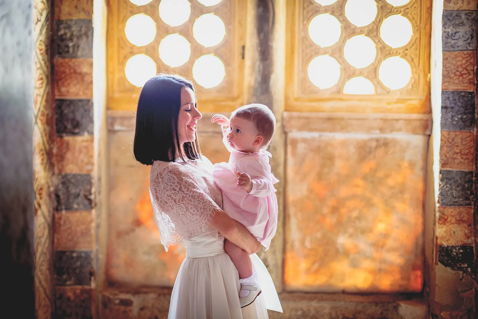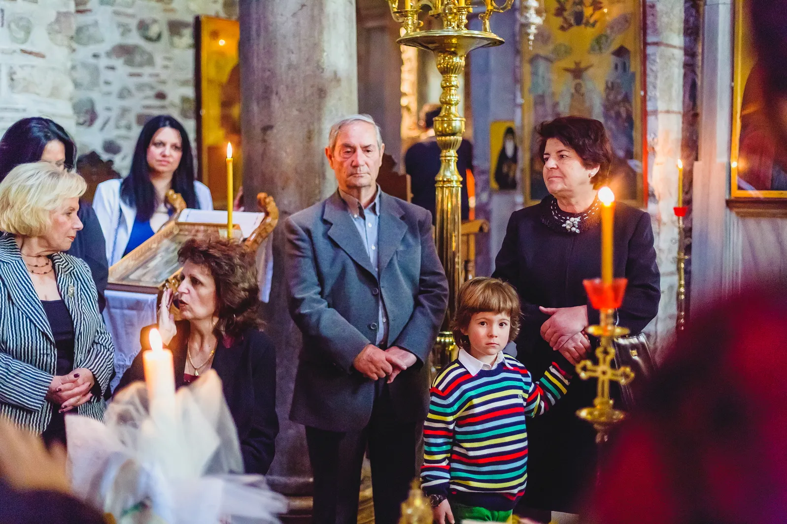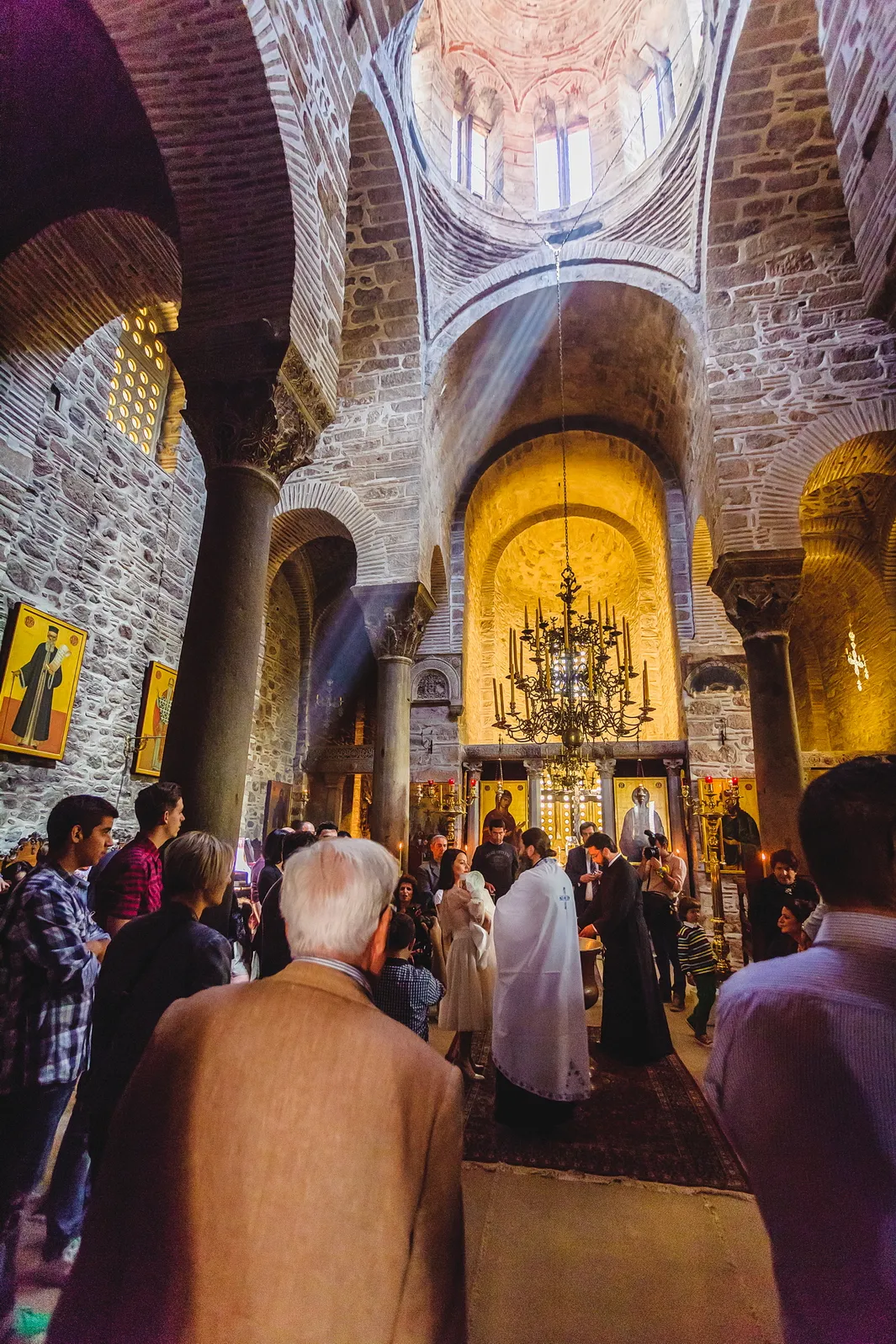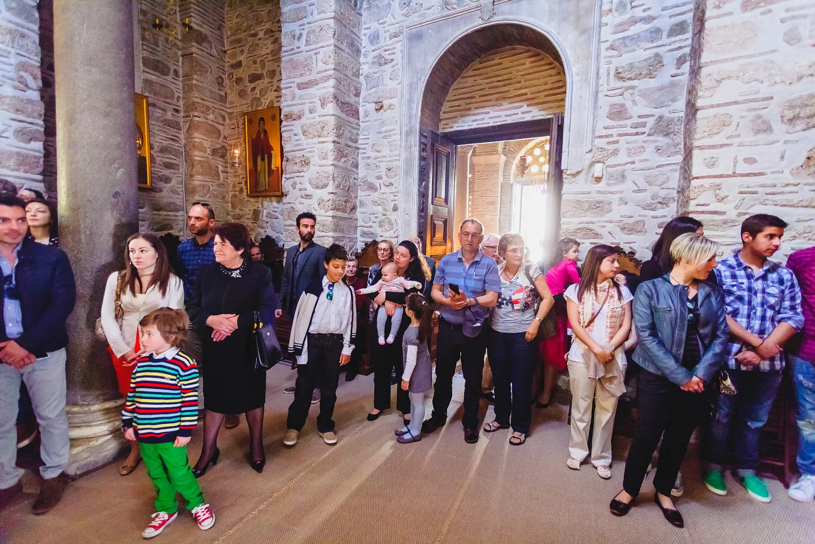 Η ατμόσφαιρα εντός του Καθολικού της Μονής ήταν μοναδική. Οι ακτίνες του ήλιου που περνούσαν από τα παράθυρα φώτιζαν τα ανεκτίμητα ψηφιδωτά και τις τοιχογραφίες, δημιουργώντας ένα περιβάλλον γεμάτο δέος και ιερότητα. Μέσα σε αυτό το σκηνικό, η Εβελίνα, ήρεμη στην αγκαλιά των γονιών και των νονών της, βαπτίστηκε, λαμβάνοντας το όνομά της και την ευλογία της Εκκλησίας. Η συγκίνηση ήταν ζωγραφισμένη στα πρόσωπα όλων των παρευρισκομένων, καθώς γίνονταν μάρτυρες της έναρξης του πνευματικού ταξιδιού της μικρής, σε έναν χώρο που αποπνέει πίστη και παράδοση.