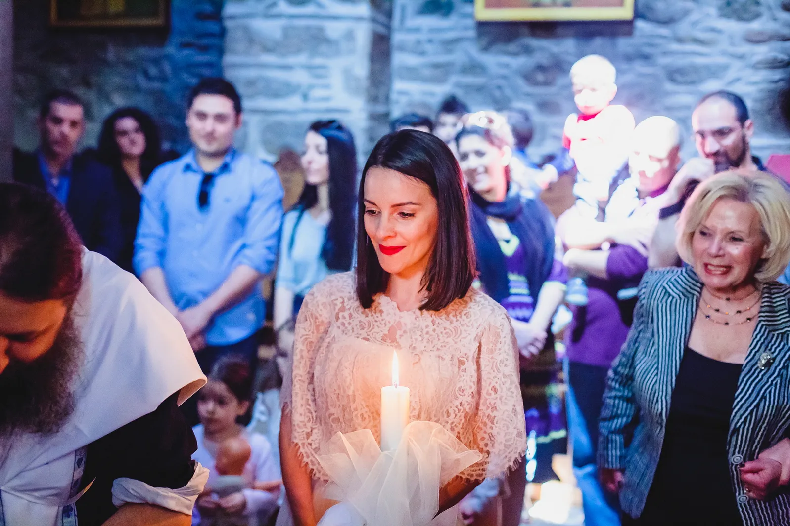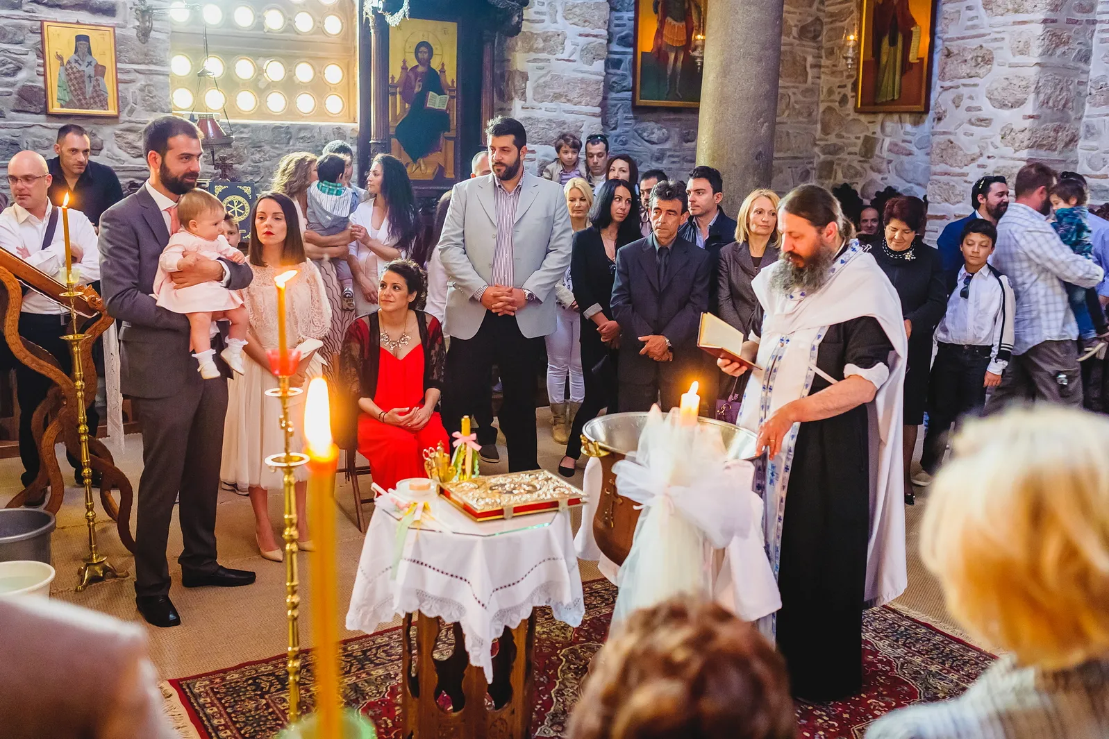 Κάθε λεπτομέρεια, από την ψαλμωδία που αντηχούσε στους πέτρινους θόλους μέχρι το απαλό φως των κεριών, συνέβαλε στη δημιουργία μιας αξέχαστης εμπειρίας. Η επιλογή της Μονής Οσίου Λουκά δεν ήταν τυχαία· προσέδωσε μια ιδιαίτερη βαρύτητα και μια αίσθηση διαχρονικότητας στη βάπτιση της Εβελίνας, συνδέοντας το παρόν της με την πλούσια πνευματική και πολιτιστική κληρονομιά του τόπου.