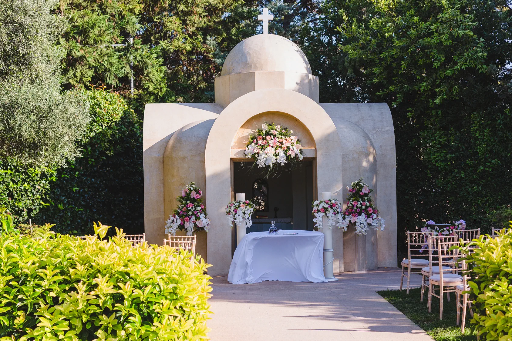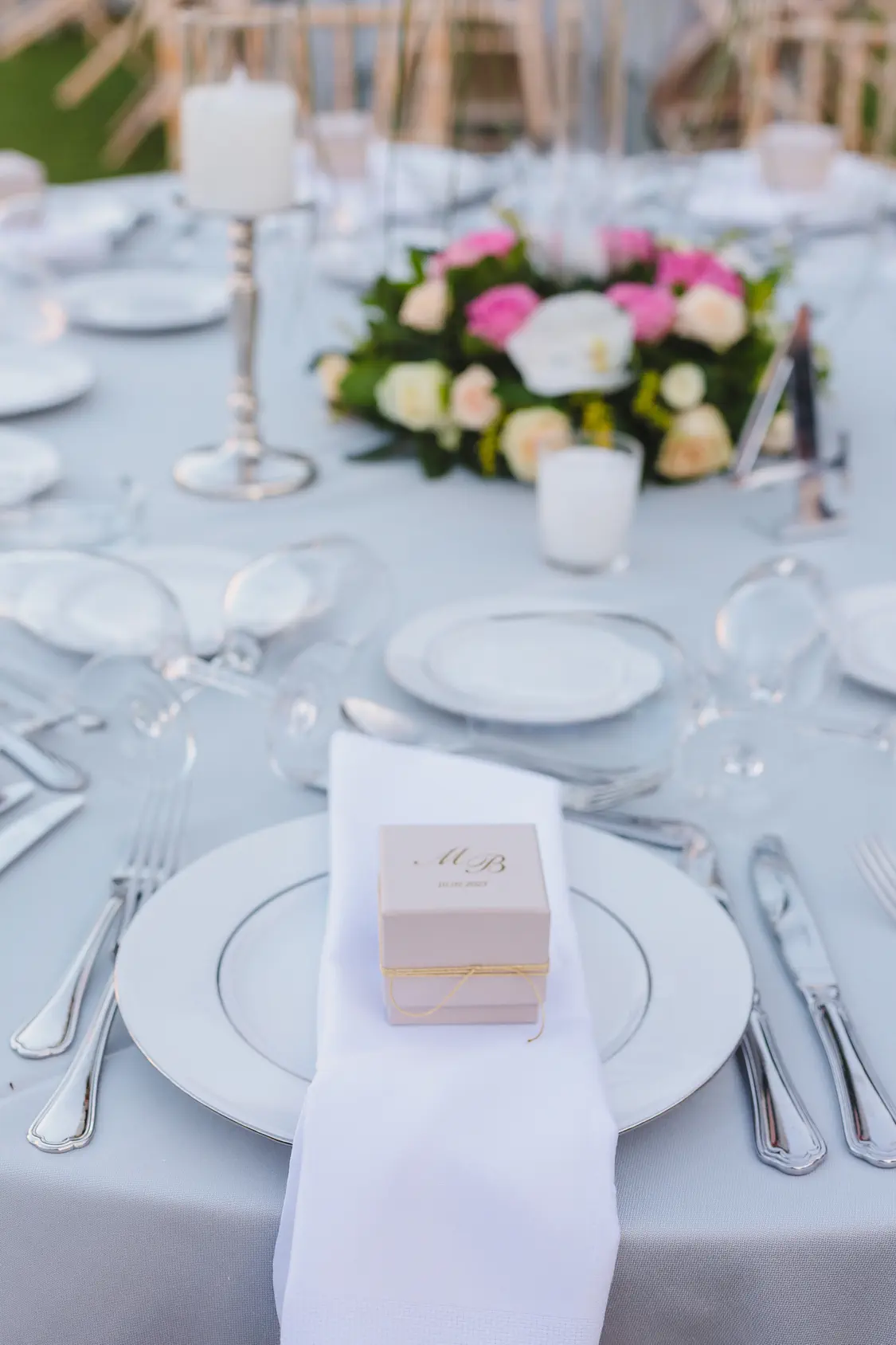 Το κτήμα, με την εκπληκτική θέα και την ατμόσφαιρα γαλήνης, αποτέλεσε το τέλειο σκηνικό για αυτή την ξεχωριστή ημέρα. Λουλούδια σε παστέλ αποχρώσεις στόλιζαν τον χώρο, ενώ το γλυκό άρωμα της φύσης συνέβαλε στη δημιουργία μιας μαγευτικής ατμόσφαιρας.