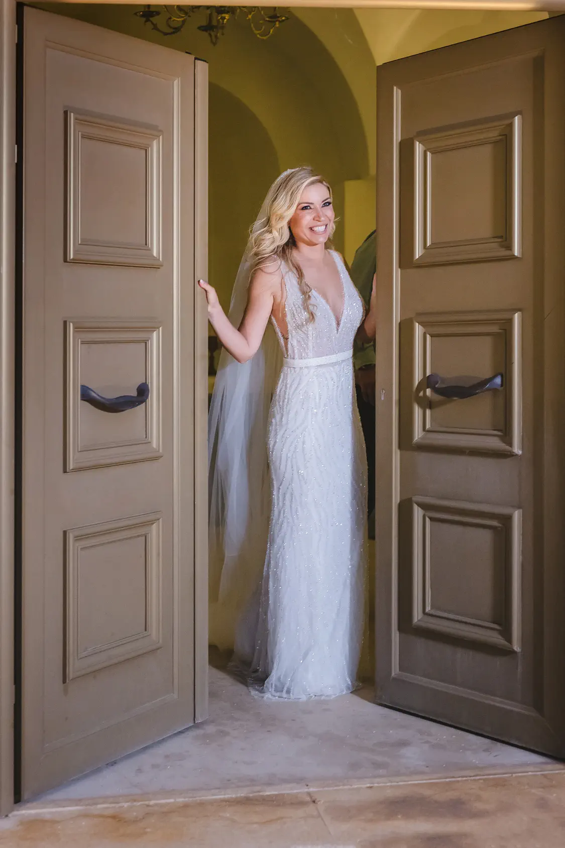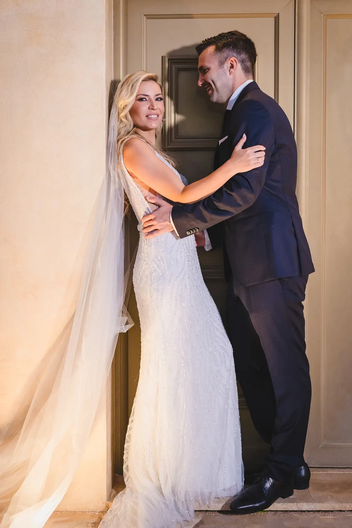 Η Βίκη, λαμπερή μέσα στο νυφικό της, έφτασε συνοδευόμενη από τον πατέρα της, αφήνοντας τον Μπάμπη με κομμένη την ανάσα. Τα βλέμματά τους διασταυρώθηκαν και ένας σιωπηλός διάλογος αγάπης ξεκίνησε, πιο δυνατός από κάθε λέξη.