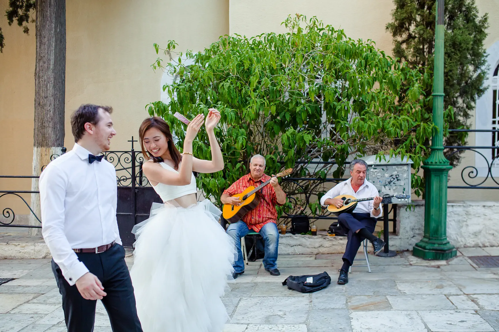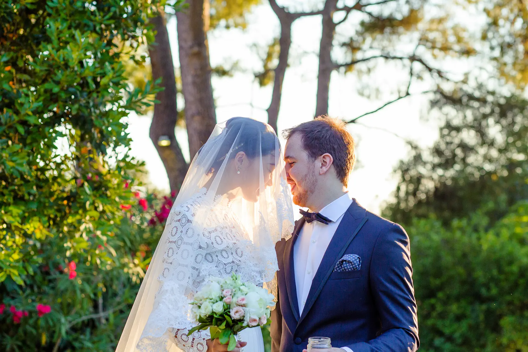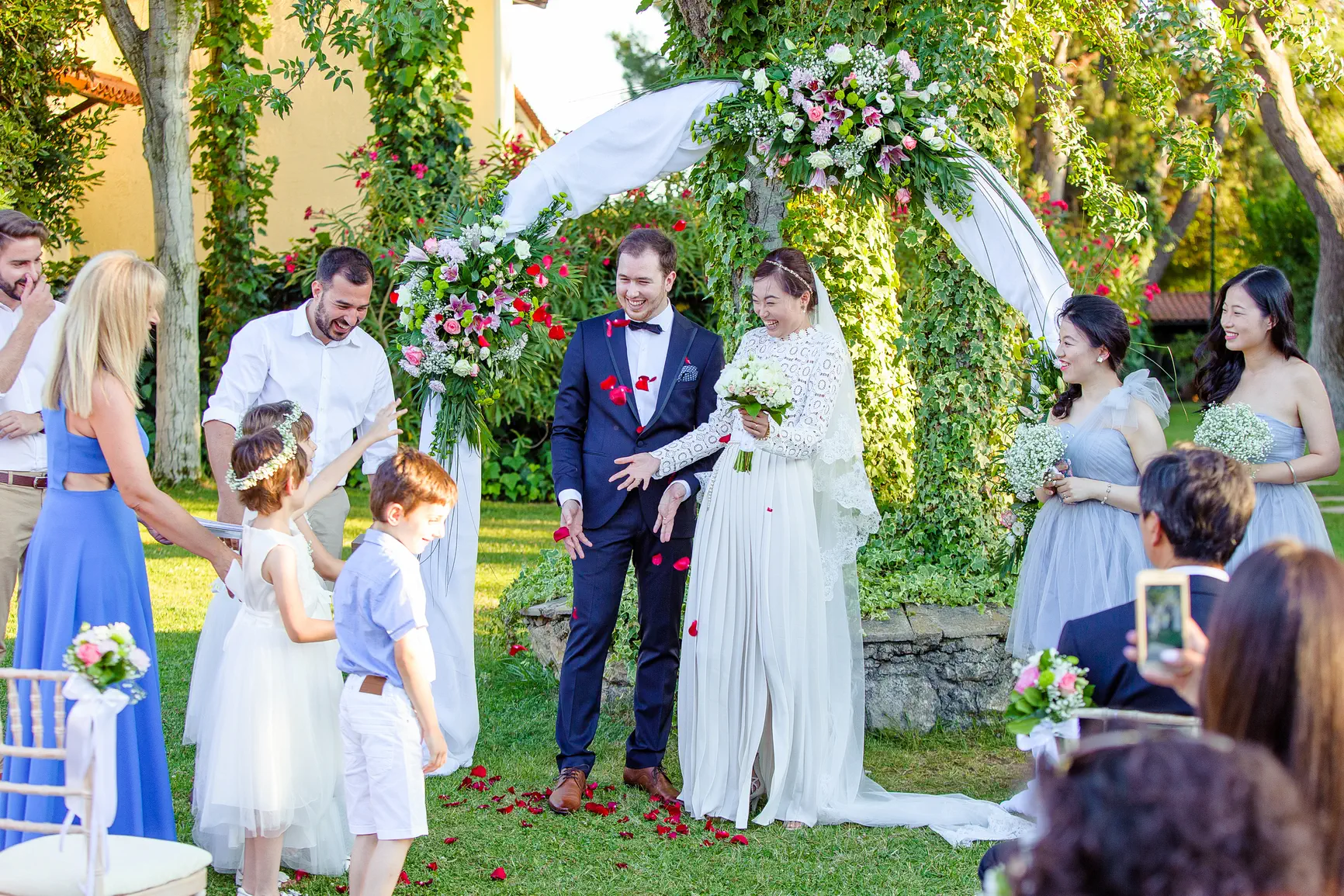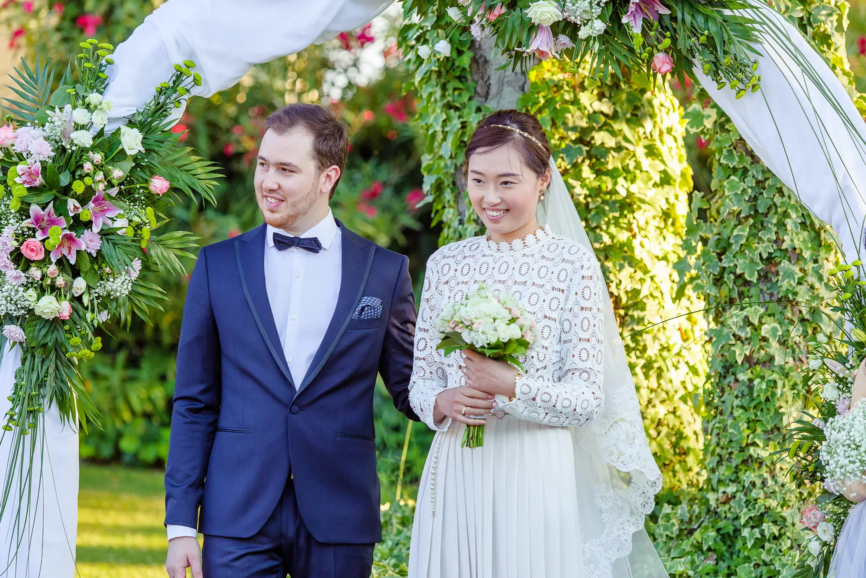 Καθώς ο ήλιος έπαιζε κρυφτό ανάμεσα στα δέντρα, ο Βασίλης και η Sun αντάλλαξαν τους πιο τρυφερούς όρκους, με τα βλέμματά τους να υπόσχονται αιώνια αφοσίωση και τα χαμόγελά τους να φωτίζουν τα πάντα γύρω τους. Η ατμόσφαιρα ήταν γεμάτη συγκίνηση και ανυπομονησία. Η Sun, πανέμορφη μέσα στο νυφικό της, έφερε μια λάμψη εξωτική και μοναδική, ενώ ο Βασίλης, γοητευτικός και εμφανώς ευτυχισμένος, την περίμενε με αγάπη.