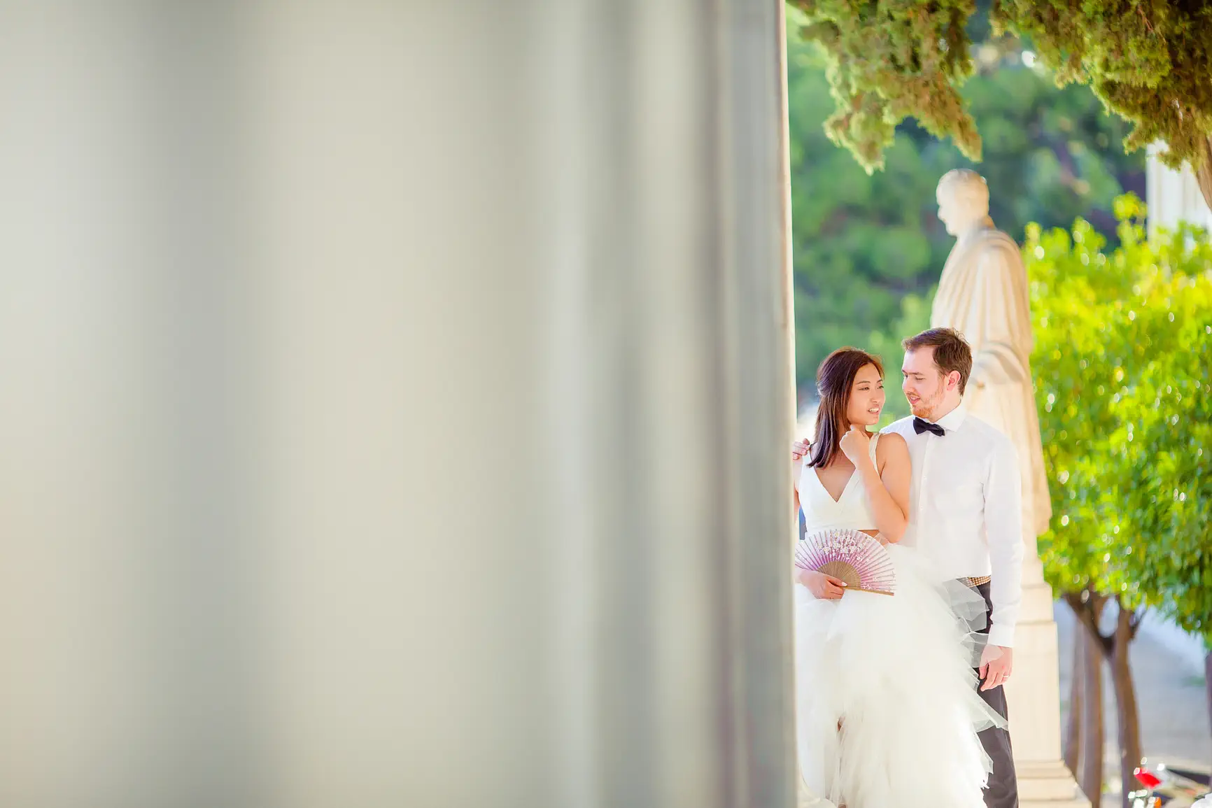 Η μαγεία όμως δεν τελείωσε εκεί. Την επόμενη μέρα, η Αθήνα άνοιξε την αγκαλιά της για το ζευγάρι. Το Ζάππειο Μέγαρο, με τη νεοκλασική του μεγαλοπρέπεια και τους ολάνθιστους κήπους του, αποτέλεσε το ιδανικό σκηνικό για μια φωτογράφηση γεμάτη διαχρονική ομορφιά. Οι εικόνες που απαθανατίστηκαν εκεί, σε αντίθεση με τη σύγχρονη αύρα του κτήματος, αιχμαλώτισαν την ευτυχία τους σε ένα κλασικό καμβά, προσθέτοντας ακόμα ένα κεφάλαιο στο δικό τους, μοναδικό παραμύθι.